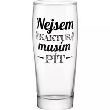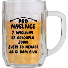 Do toho máme řadu sklenic s opravdu vtipnými nápisy a hesly. Jedna hlásí "Šetřím vodou, piju pivo", další vtipkuje "Jdu na jedno", ale zobrazuje hned několik čárek za vypitá piva. K nejoblíbenějším patří sklenice s textem "Ideální sklenice pro chlapa jako jsem já".